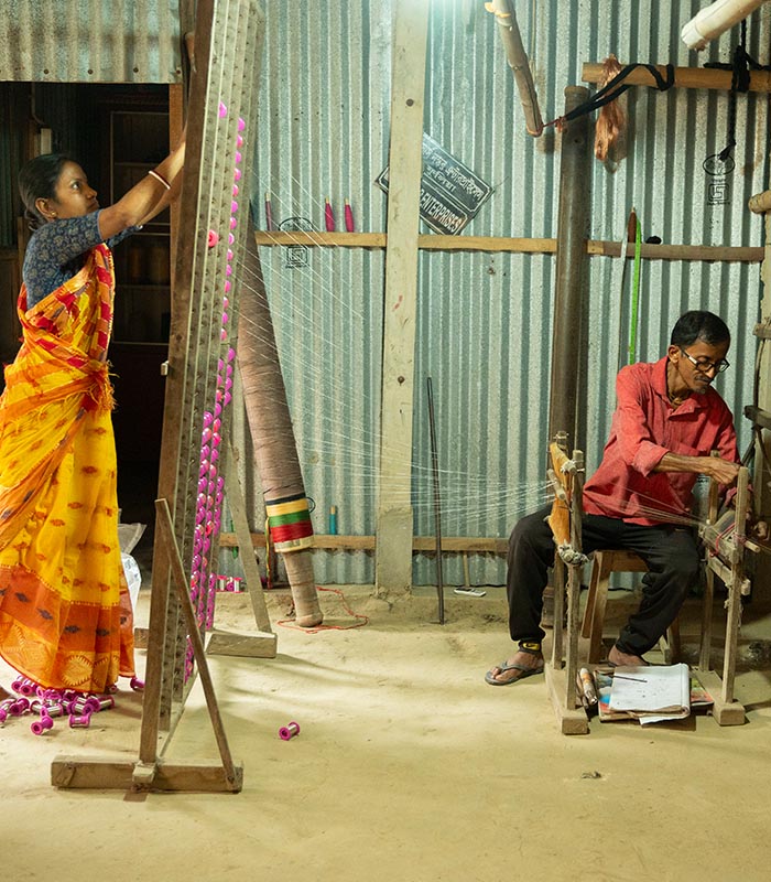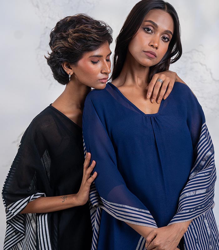 Our designs reflect an aesthetic that is both original yet ownable. Handwoven from soft Bengal cotton muslin and infused with the artisan’s personal touch, subtle variations in details give each piece a character of its own. This distinctiveness sets it apart from mass-produced clothing.
